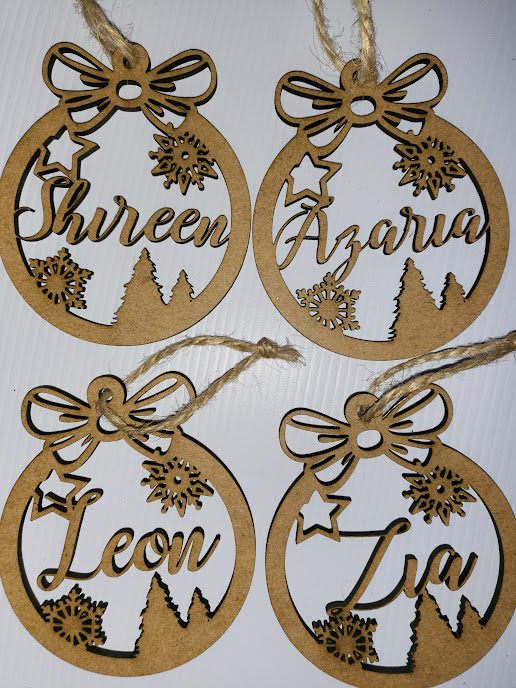 Elegant and timeless, these laser-cut ornaments are customised with any name to add a personal sparkle to your Christmas tree. A keepsake to treasure year after year.