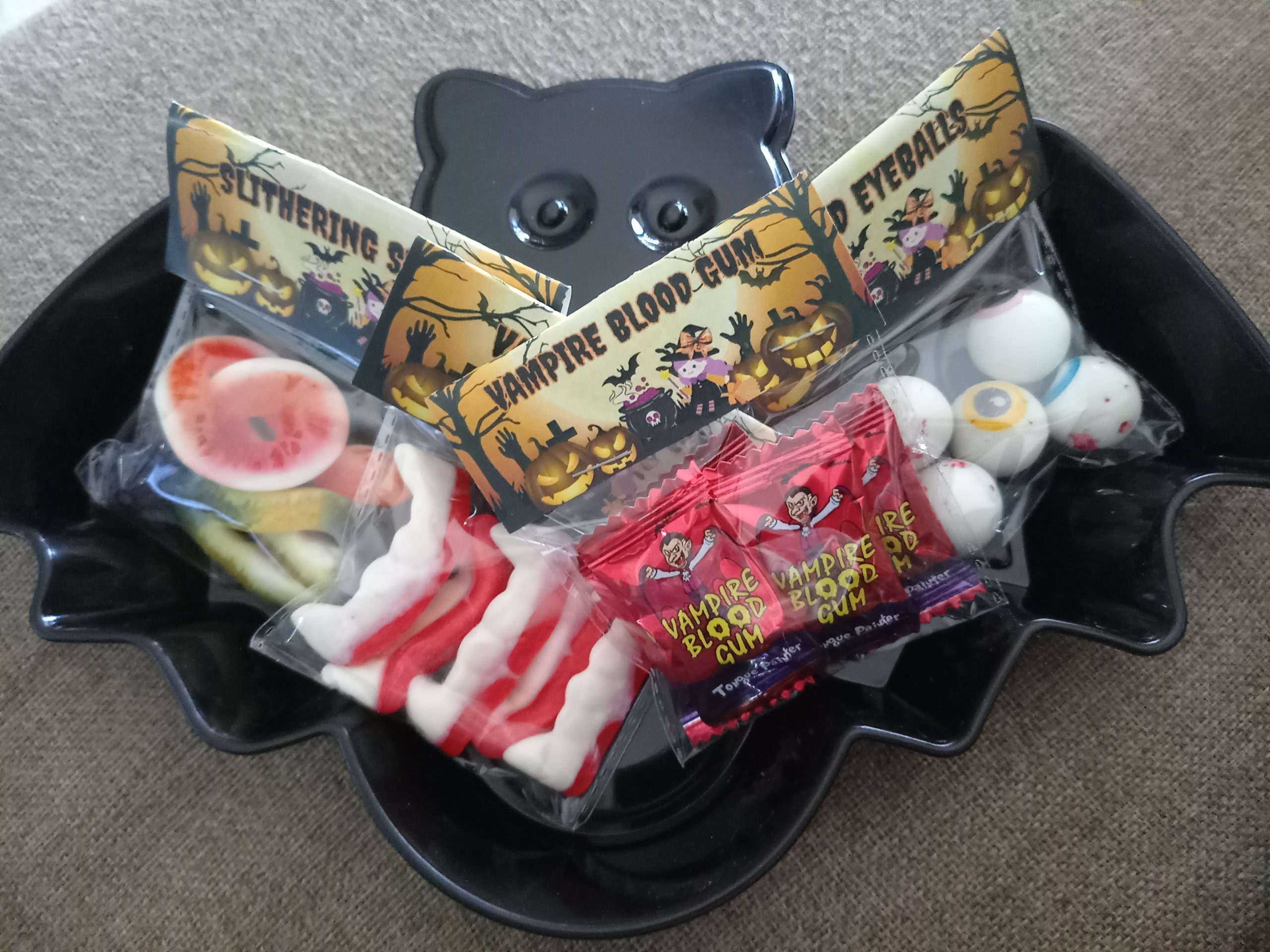 Prepacked and labelled candy to make the day lots of fun Eyeball Candy Vampire Teeth Vampire Blood Gum Slithering Snakes Suckers